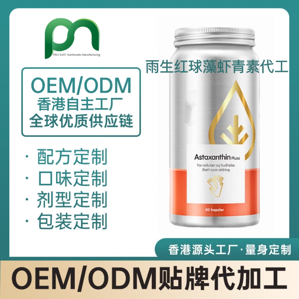 雨生红球藻(Haematococcus pluvialis)是一种淡水单细胞绿藻,因其在逆境中能积累大量虾青素而闻名。近年来,它因卓越的营养价值和广泛的应用前景,成为健康、医药和美容领域的研究热点。香港保健品工厂OEM雨生红球藻作用:抗氧化,抗衰一、核心功效与作用超强抗氧化雨生红球藻是自然界中虾青素含量很高的生物之一,其虾青素的抗氧化能力是维生素E的550-...