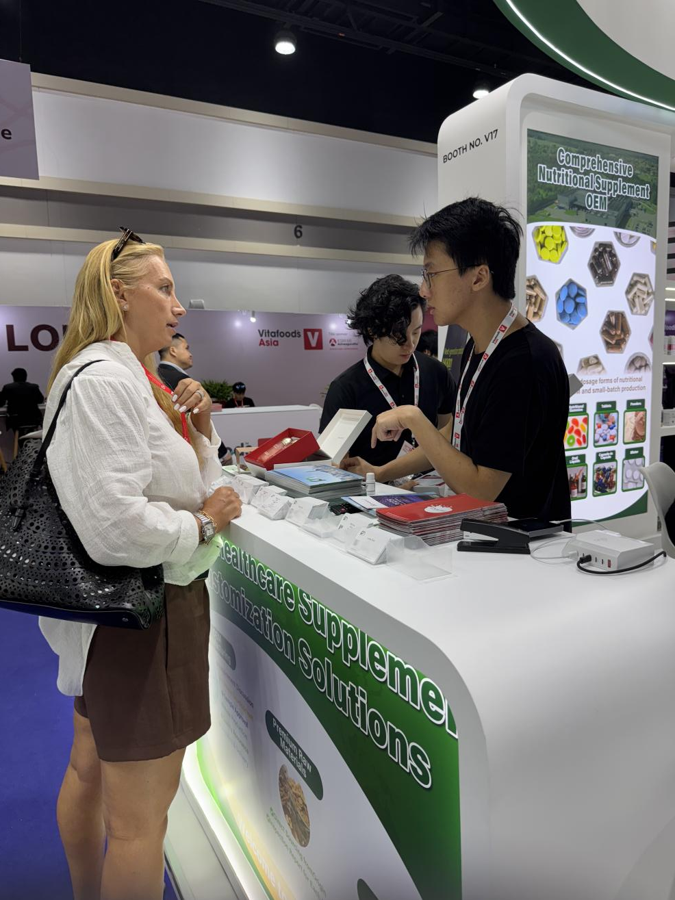 随着VitaFoodsAsia展会落幕,御安营养已与多家来自不同国家的客户交换联系方式,并达成初步合作意向,涵盖软胶囊、粉剂、片剂等多个剂型代工项目,对于未来,御安营养海外业务负责人表示:“此次展会展现了东南亚蓬勃潜力,后续我们将依托全球化工厂布局,为更多国际客户提供‘更高效、更贴合本地需求’的OEM/ODM服务,持续践行‘汇聚天然营养,优选核心科技’的企业理念。”